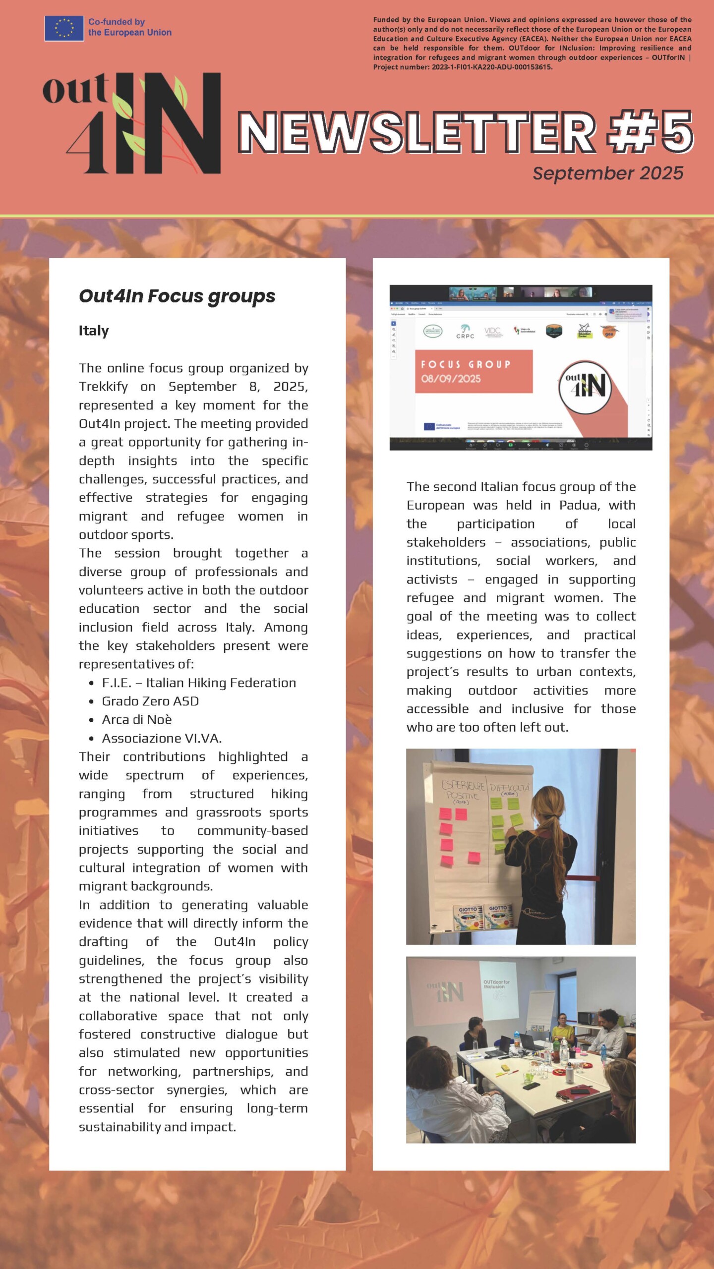 OUTdoor for INclusion: Improving resilience and integration for refugees and migrant women through outdoor experiences – OUTforIN | Project number: 2023-1-FI01-KA220-ADU-000153615.